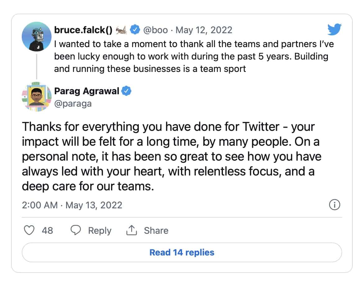 Twitter har sparkat två av sina toppchefer – produkt- och intäktscheferna har fått lämna Twitter sedan VD:n Parag Agrawal meddelat att han har andra planer för Twitter vilket i klartext betyder att Bruce Falck och Kayvon Beykpour inte passar in i hans planer.
