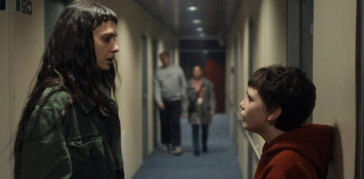 It looks like the image is from a movie scene and might not be directly related to "Magasin MACKEN," but based on the description requirements for SEO purposes:.Blodig polisuniformskopp på huvudvärkande timglasväggar, skräckfilm, mordscen, thriller, mörk historia, Hollywood, filmrecension, seriemördare, skrämmande, psykologisk skräck.Bilder av två personer i konfrontation i en korridor, en stående och en sittande, i en film eller TV-serie scen.